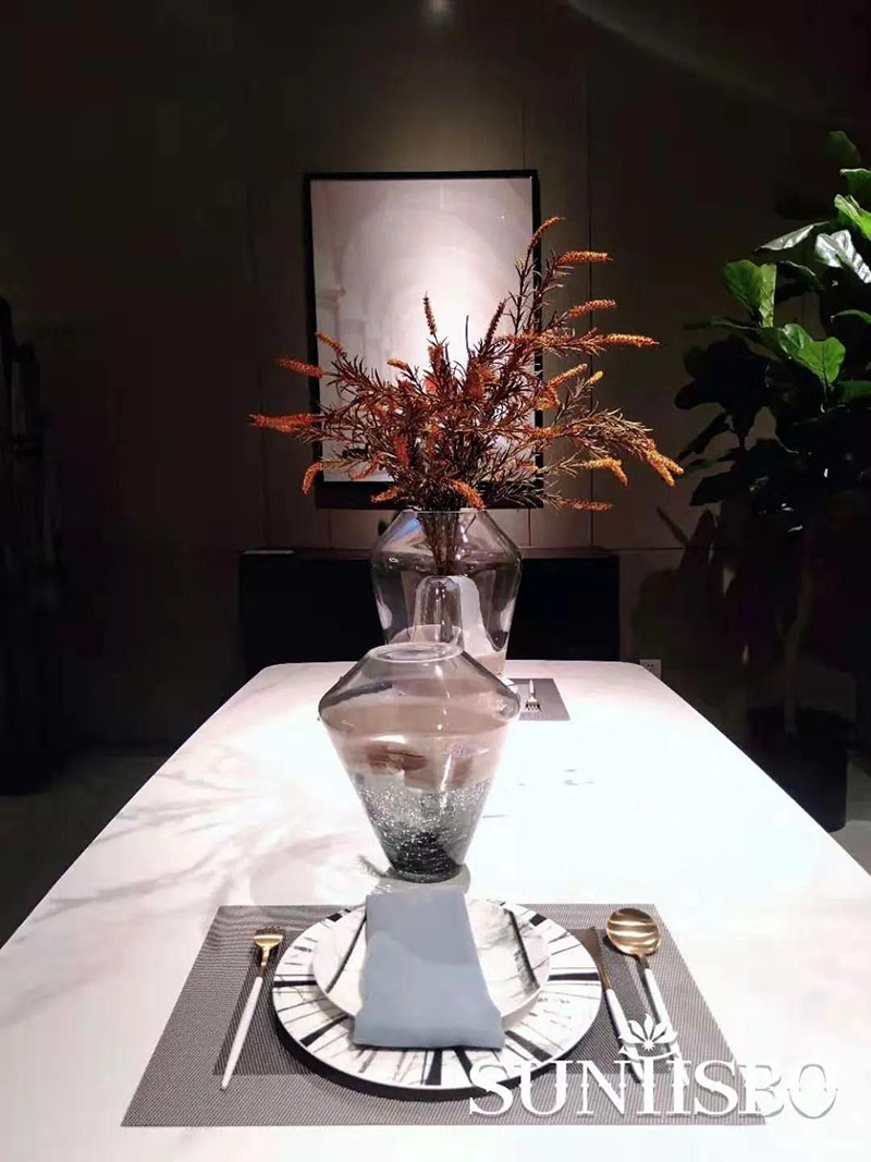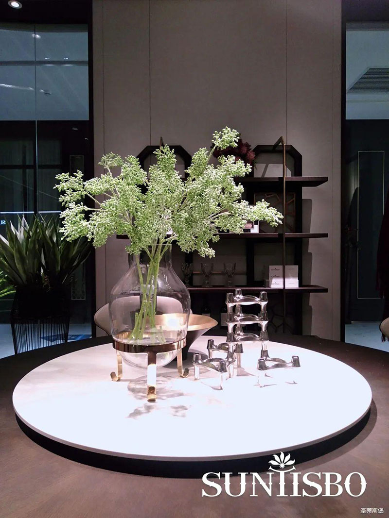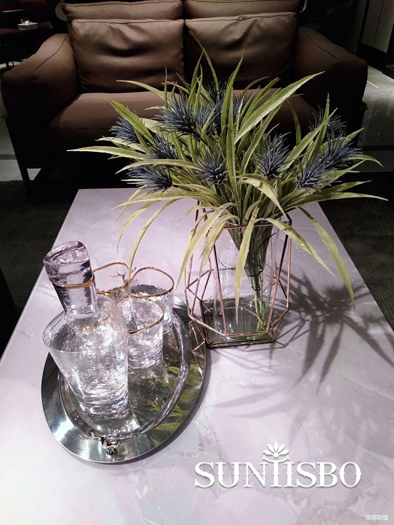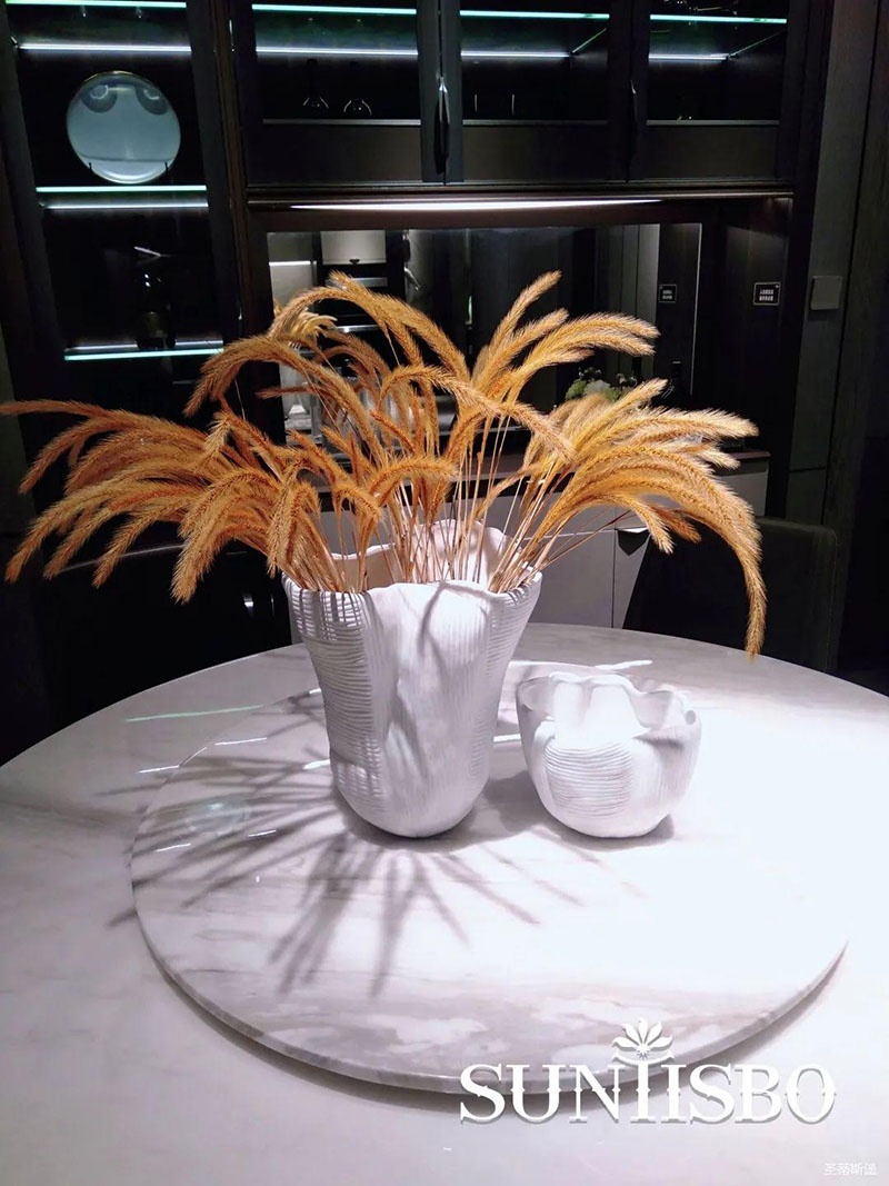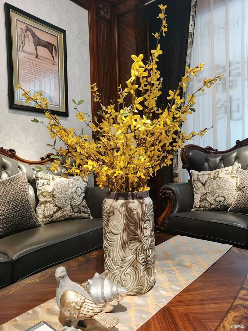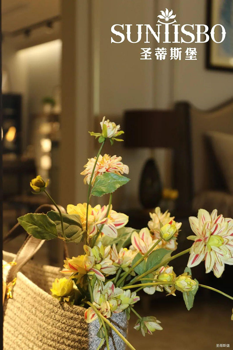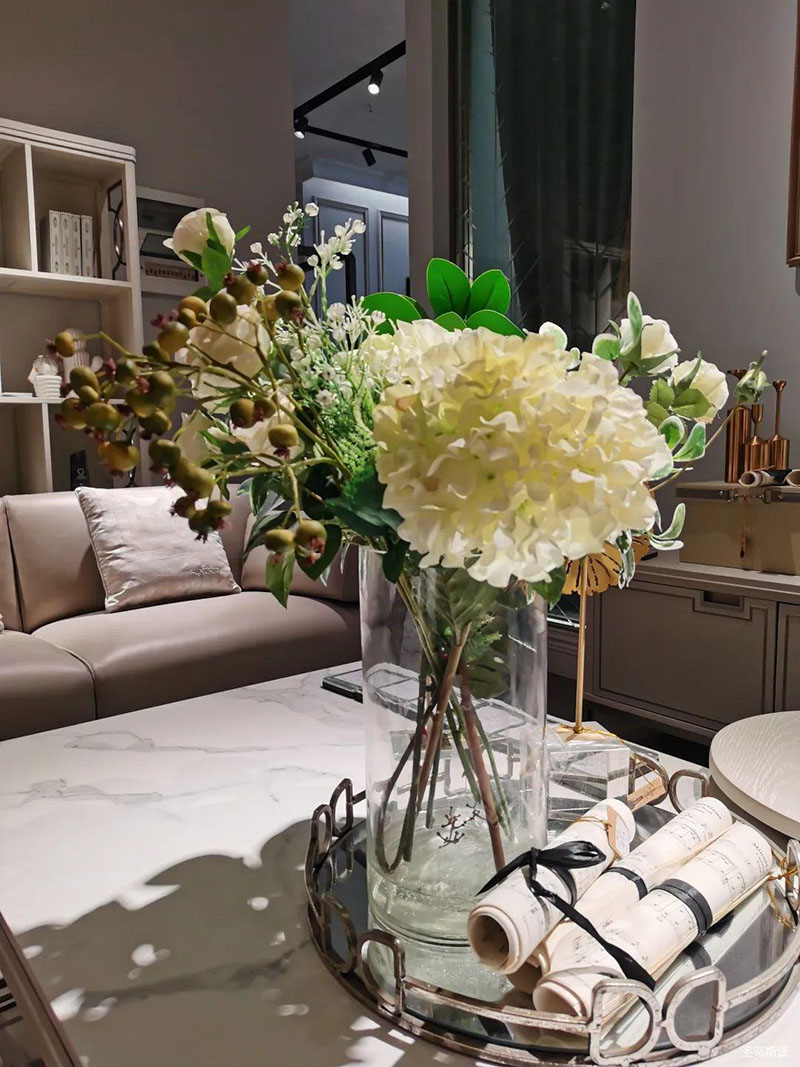 3.轻奢的配饰也需邀来似锦繁花相称。色彩跳脱的植物更为亮眼,让自然界的色彩与姿态应和空间之间的协调,传递空间与情感的共鸣。